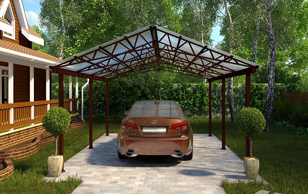 Стандартные характеристики каркаса навеса: столбы 80х80х3мм.